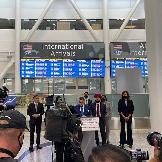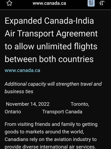 Member of Parliament for Brampton East, Maninder Sidhu, hailing from a riding with one of the highest densities of Sikhs and Punjabis in Canada, excitedly quote tweeted Minister Alghabra's announcement and added that “Brampton residents have been asking for more flights and options. Thanks to the advocacy of Minister Alghabra and so many MPs here in the GTA, we will now be able to go from a 35 weekly flight limit to unlimited weekly flights between Canada and India!”
