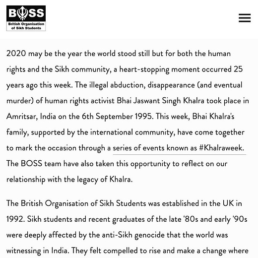 When we think about what is made visible, the following questions arise: What is lost as Bhai Jaswant Singh is labelled as an “Indian” human rights activist? How does this co-opt their legacy, the ongoing movement for Khalistan and invisibilize the structures that imprison Sikhs for merely liking social media posts or handing out literature about Khalistan?