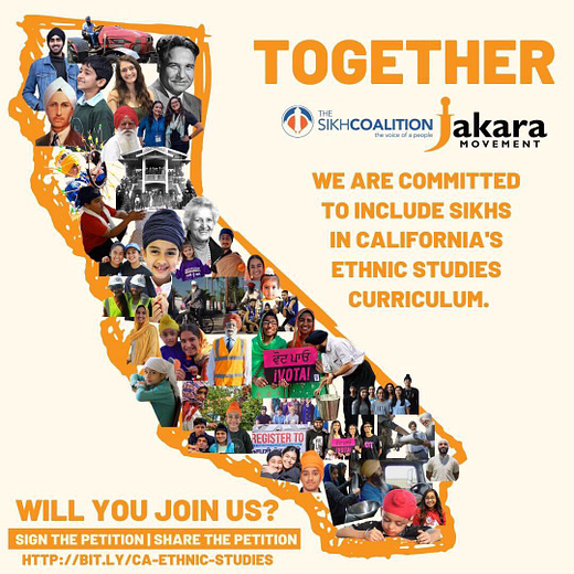 There are several communities that are not represented as they should be, and the Sikh Coalition and the Jakara Movement stand by other marginalized groups who continue to advocate for more accurate representation - including the Arab American community, who are traditionally and importantly featured in Ethnic Studies. Accordingly, we continue to work with allied groups like the Liberated Ethnic Studies Model Curriculum Institute to make sure that legitimate and comprehensive educational materials are created and implemented in classrooms at the school district level.