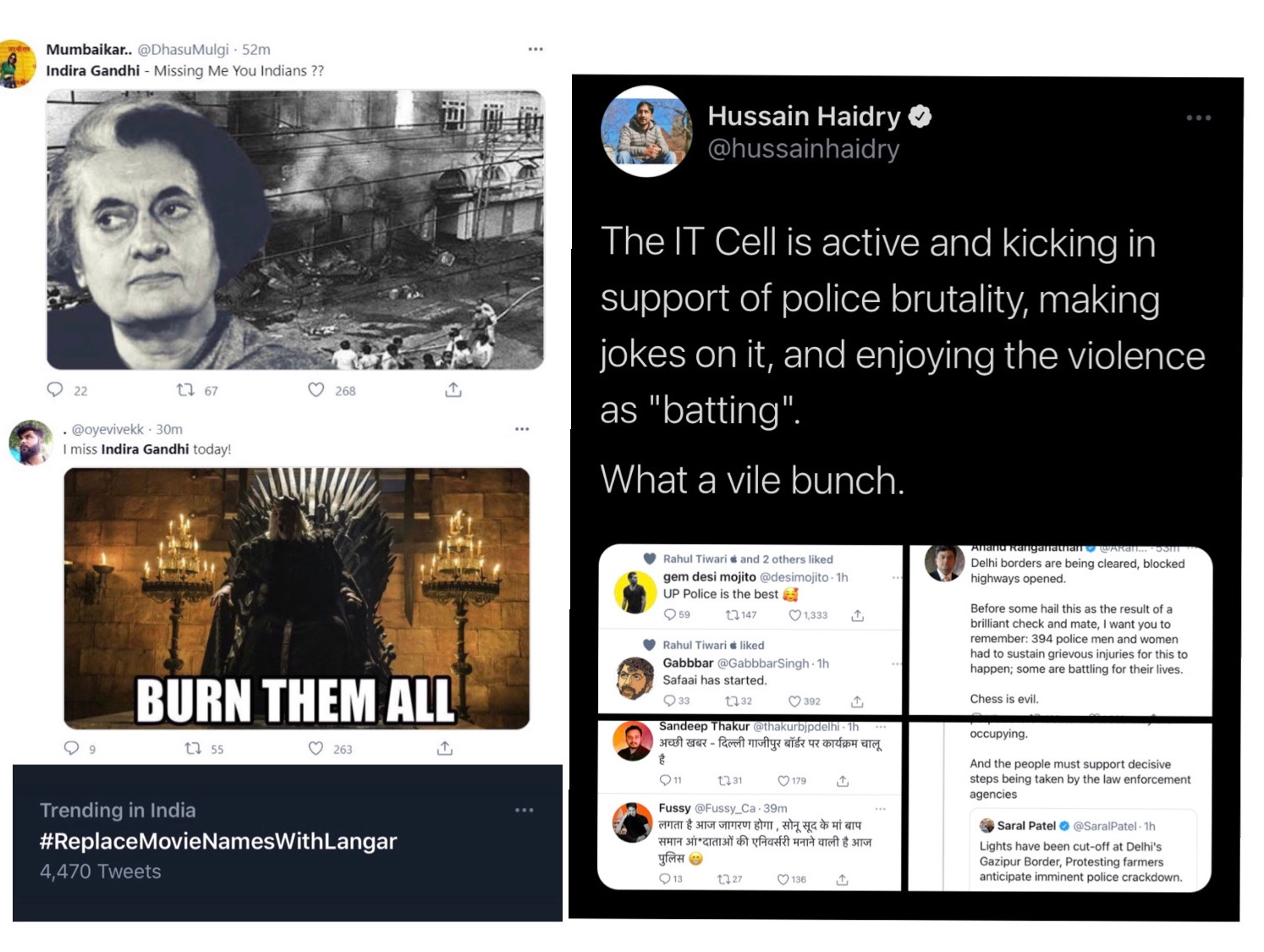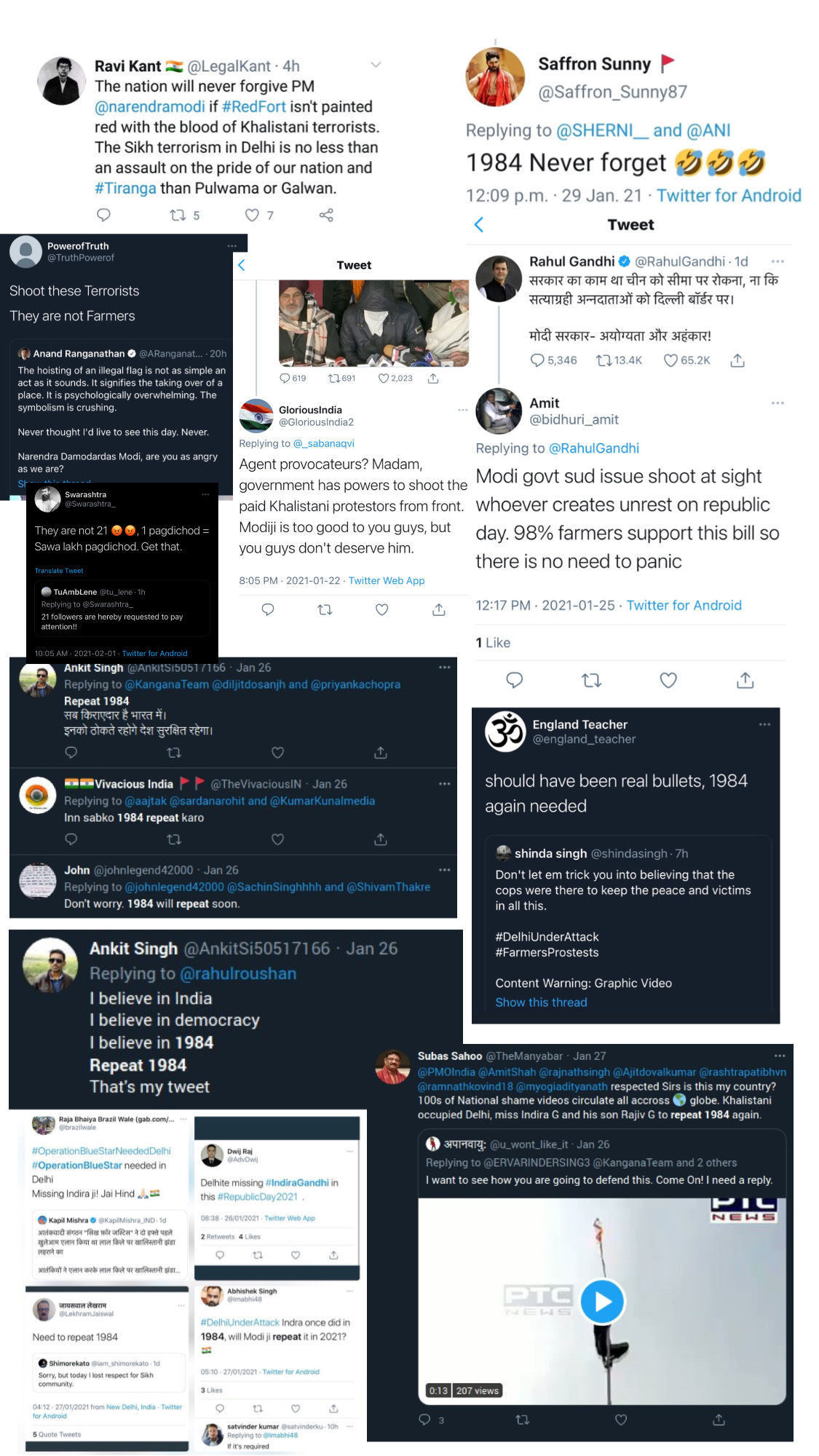 This was visibly evident as a response to Sikhs speaking up against India’s mistreatment of the farmers. While some IT Cell members demanded another “1984” Sikh Genocide, others worked to trend hashtags like #ReplaceMovieNamesWithLangar.