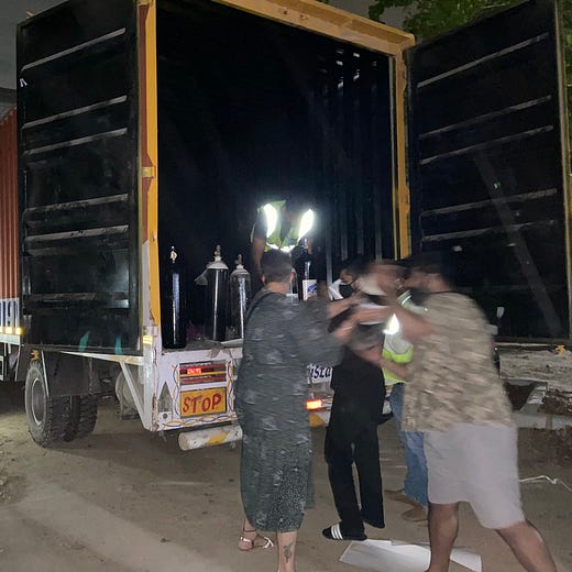 It is not easy to procure cylinders in Delhi, which is why Hemkunt Foundation arranges for them from neighbouring states. However, just yesterday, their truck carrying a fresh shipment from Rajasthan was seized by local police while patients were patiently waiting outside the organization’s headquarters for the delivery.