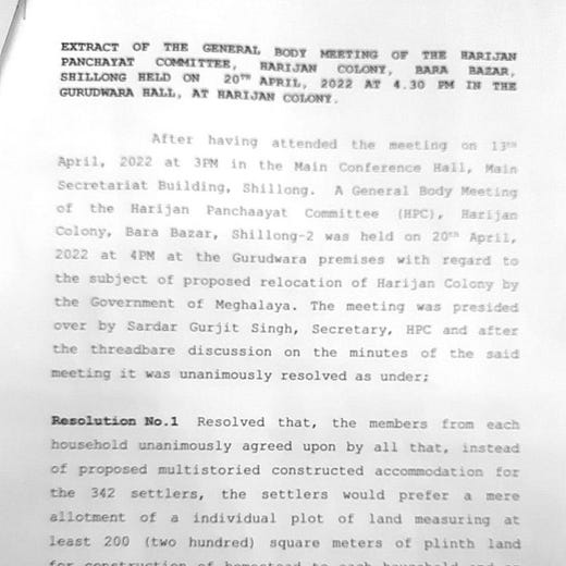 According to Gurjeet Singh, Punjabi Lane residents have met Deputy CM Prestone Tynsong and other officials in which both parties agreed to negotiate the removal. After those discussions, Gurjeet Singh held a meeting with residents of the colony on April 17 and 20, 2022, where they agreed on a proposal of demands.